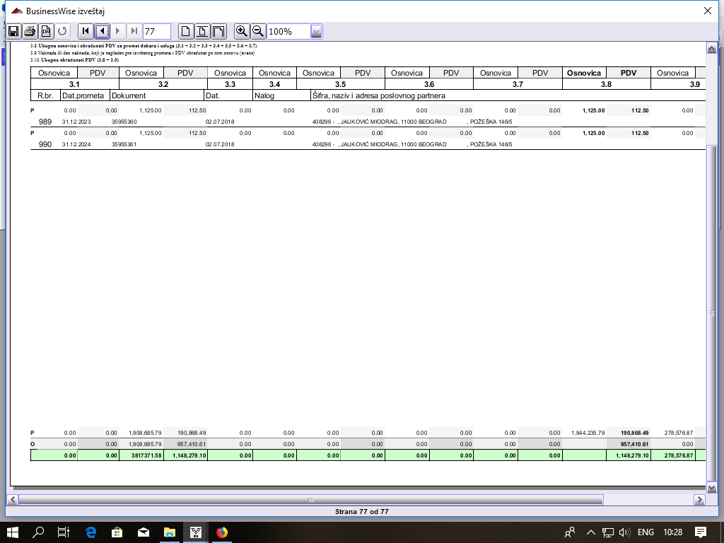 Osnovica i pdv po opštoj stopi na poziciji 3.2 se vide, a na poziciji 3.8 se vidi samo pdv. U rezimeu osnovica i pdva indentični su iznosi na 3.2 i opšte i posebne stope što ukazuje da matematika ne radi. Na 3,8 nije izkazana osnovica. Sve ovo prikazujemo na slici u prilogu.